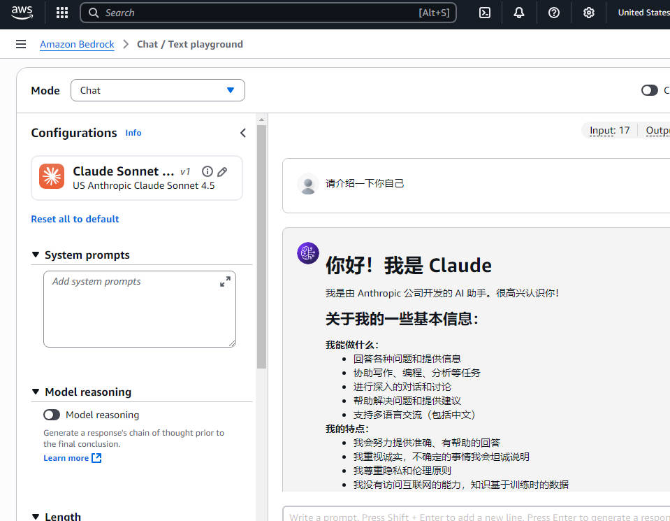 AWS BedRock Claude 账号,可以打开聊天窗口正常使用 Claude 4 等